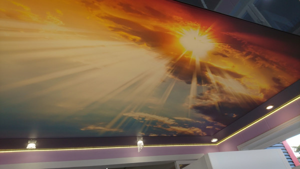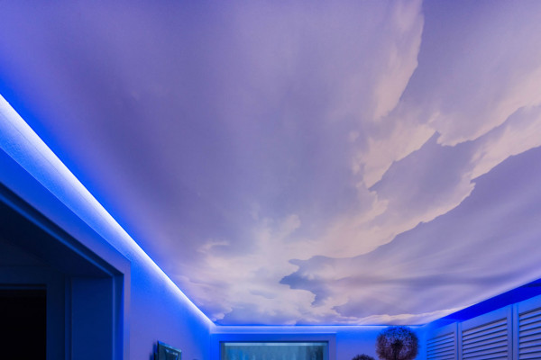 Натяжные потолки с имитацией ночного звездного неба способны создать уютную атмосферу в любом помещении. Технология предусматривает размещение небольших светодиодных лампочек по всей площади полотна. Они напоминают естественное расположение звезд на небе, благодаря чему создается очень реалистичный эффект. Натяжные потолки звездное небо с установкой в спальне или детской комнате могут выполнить роль дополнительной подсветки или ночника в темное время суток. Днем лампочки не видны, поэтому потолочное покрытие кажется однотонным.