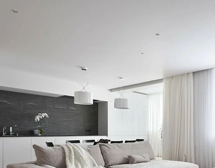 Матовый натяжной потолок – это оптимальный вариант для интерьера в стиле классика, модерн, прованс и т.п. Кроме того, он хорошо впишется в современный дизайн. Такой потолок отлично сочетается с текстурами натуральных материалов, например, дерева или камня. Цена матового полотна вас приятно порадует. У нас вы сможете подобрать вариант, исходя из доступного бюджета.