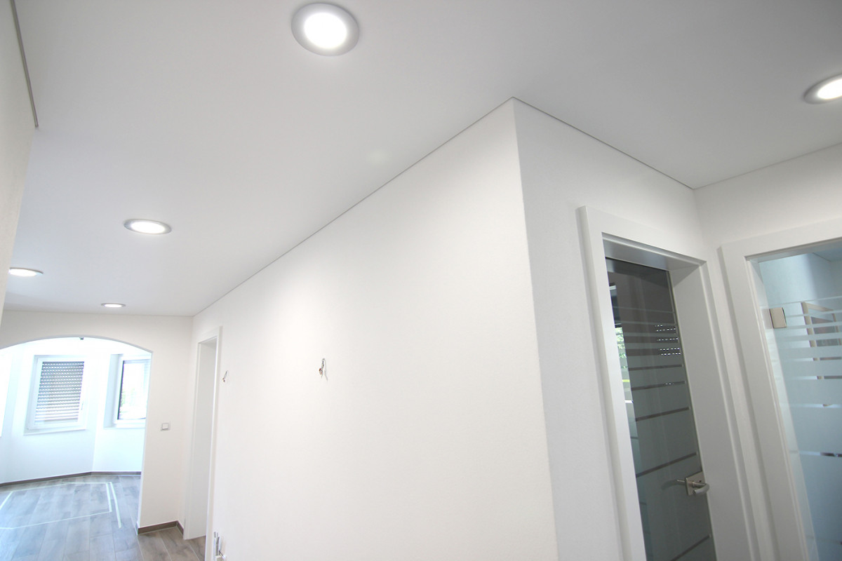 Заказать натяжной потолок в прихожую стоит по нескольким причинам. Одна из основных – это высокая износостойкость материала, которая является особенно актуальной для данного типа помещений. Такой потолок не боится воздействия влаги и перепадов температур. Полотна имеют антистатический эффект, благодаря которому пыль не скапливается на их поверхности – в результате уборка требуется крайне редко. Кроме того, натяжные потолки являются прочными – они способны выдерживать нагрузку до 100 л/м2, защищая от затапливания.