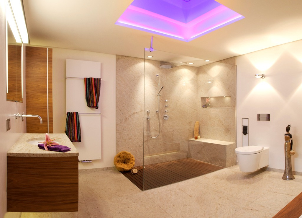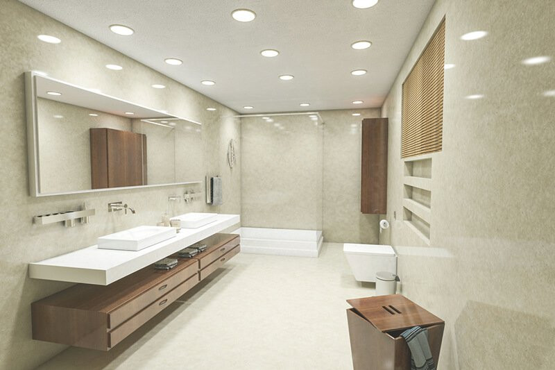 Отделка в ванной комнате требует внимательного выбора материалов. Натяжной потолок в ванной оптимально отвечают всем требованием данного типа помещений – он не боится влаги и перепадов температур. Кроме того, такие отделочные материалы не требуют специального ухода – в ходе проведения уборки достаточно протереть полотно мягкой салфеткой. Еще одно важное преимущество заключается в том, что натяжные потолки в ванной в Сочи способны защитить помещение от затопления соседями, что особенно актуально для ванной. Используемые материалы способны выдерживать нагрузку до 100 л/м2.